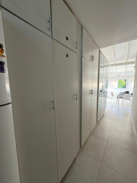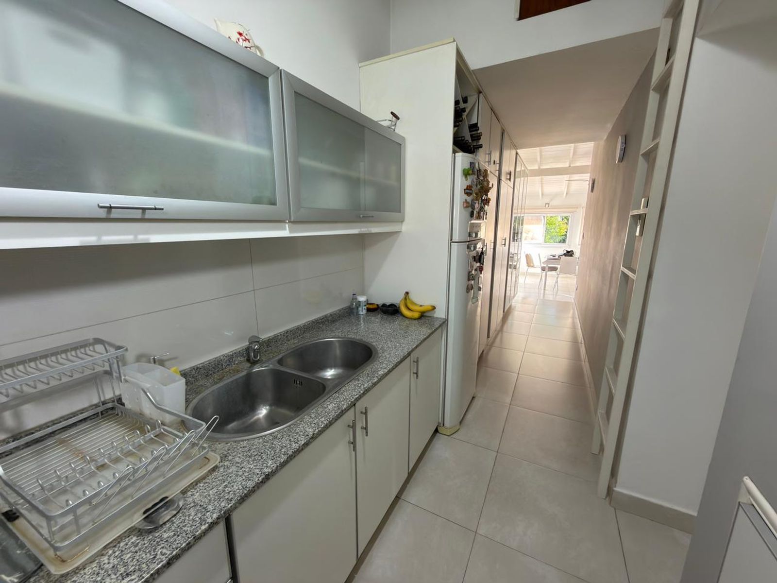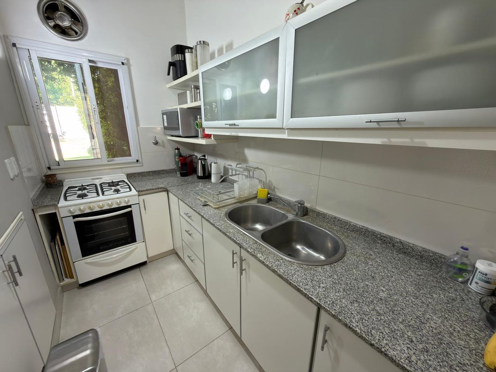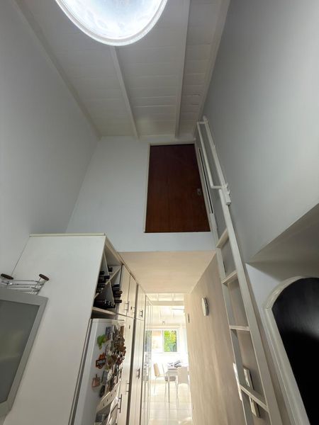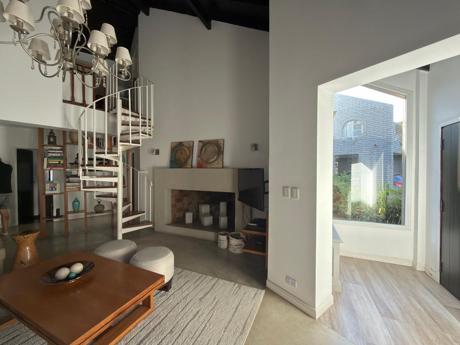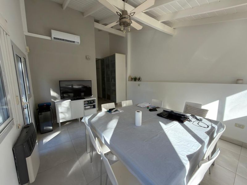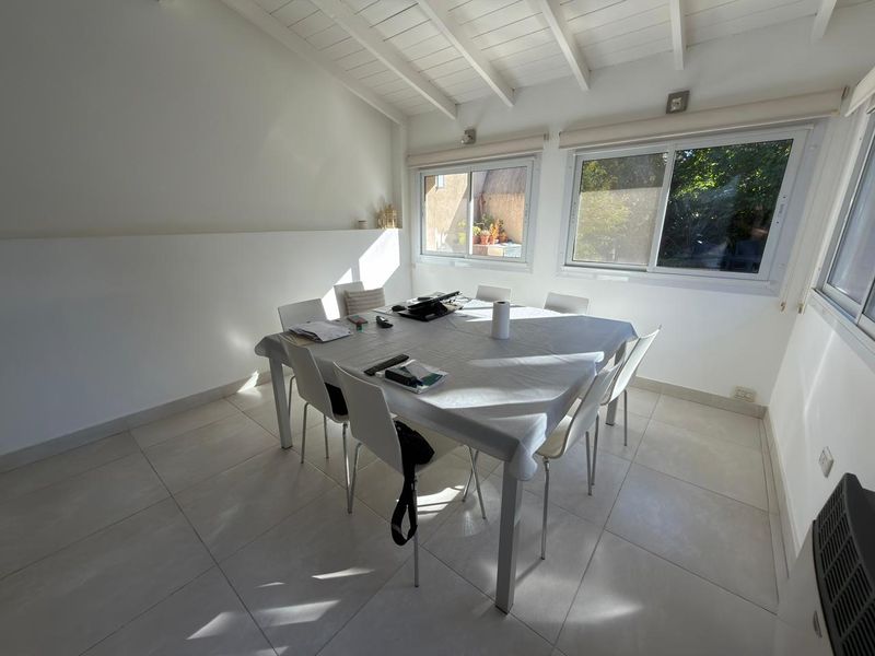 En planta baja cuenta con hall de entrada, amplio living con hogar y escalera caracol, baño completo, luminoso comedor con vista al jardín, un dormitorio en suite con placard y baño propio. La cocina, cuenta con bajo mesada y alacenas, además de incorporar un práctico espacio de guardado tipo despensa integrado al pasillo.