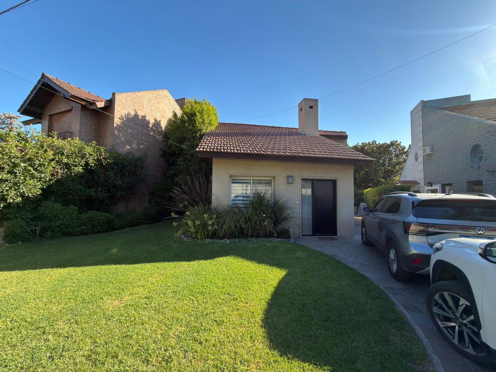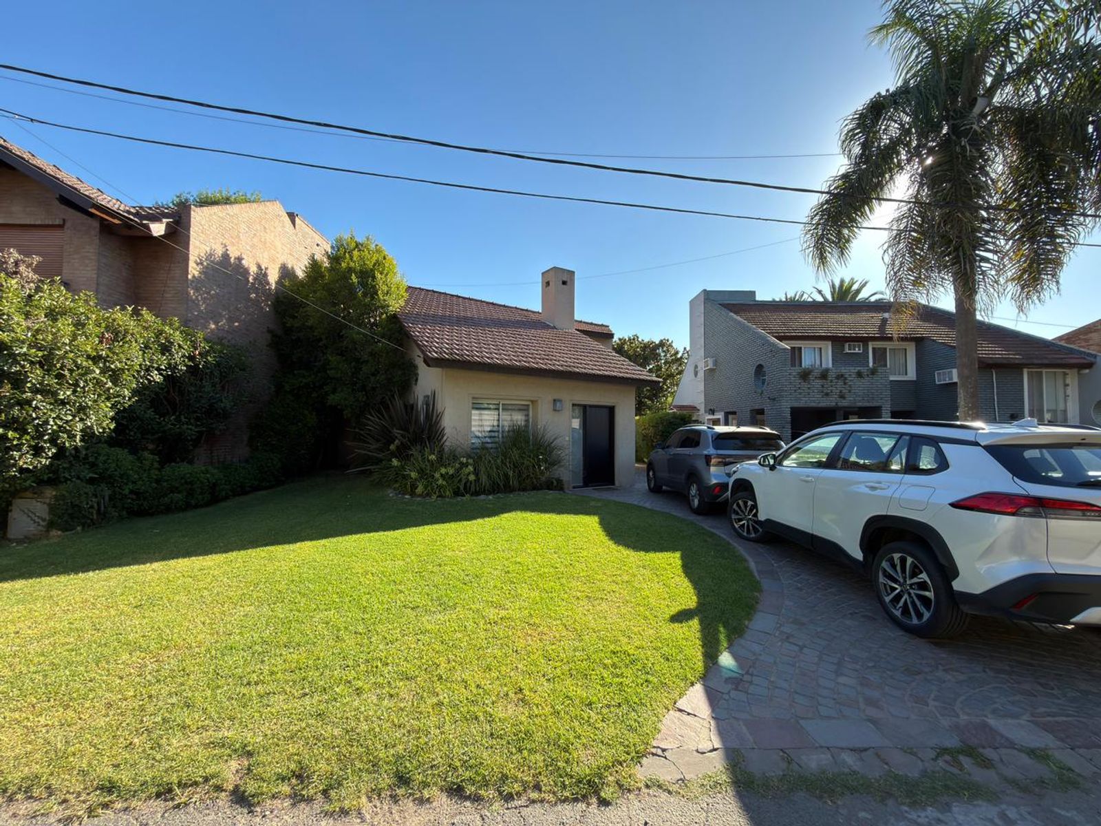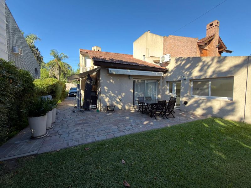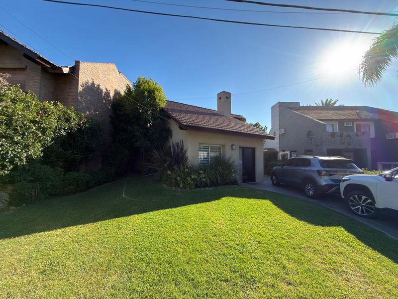 La propiedad, desarrollada en dos plantas, ofrece entrada para dos vehículos, un prolijo jardín delantero y acceso lateral hacia un amplio jardín trasero.